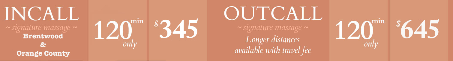 With locations in both Brentwood and Costa Mesa, I provide a premium incall experience. I always work to create a stress-free environment where you can feel safe and pampered!